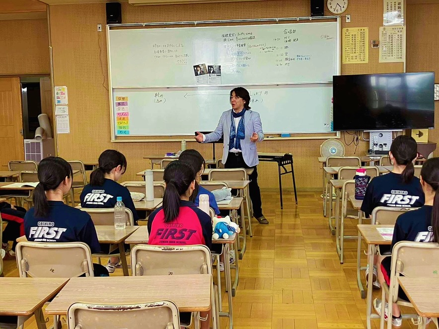 学生の皆さんと様々なトレーニングを実践していきます(助演講師:小林瑞花さん、津島圭佑さん)。呼吸や発声、発音など、一つ一つのトレーニングに真剣に取り組んでくださり嬉しかったです。様々な声の使い方を楽しみながら学びました![]()
