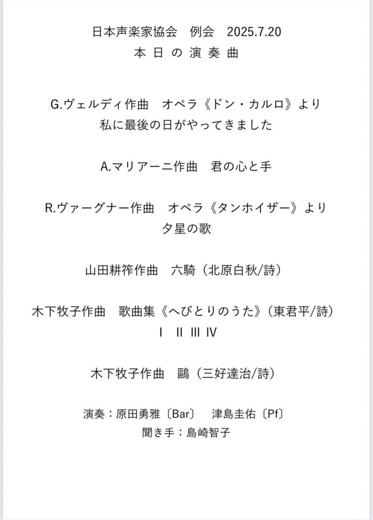日本声楽家協会の例会にて、演奏させていただきました。(pf.津島圭佑さん)